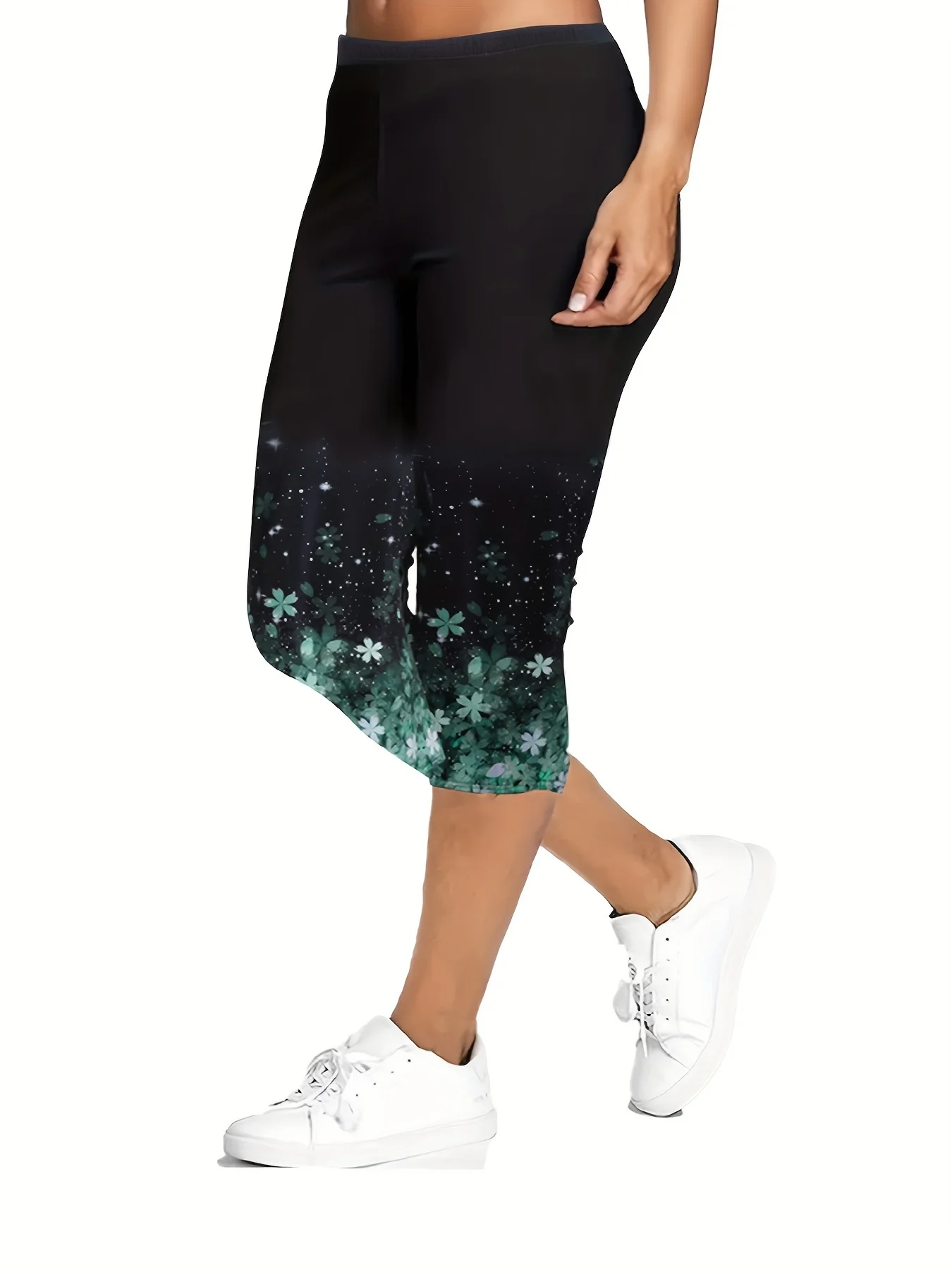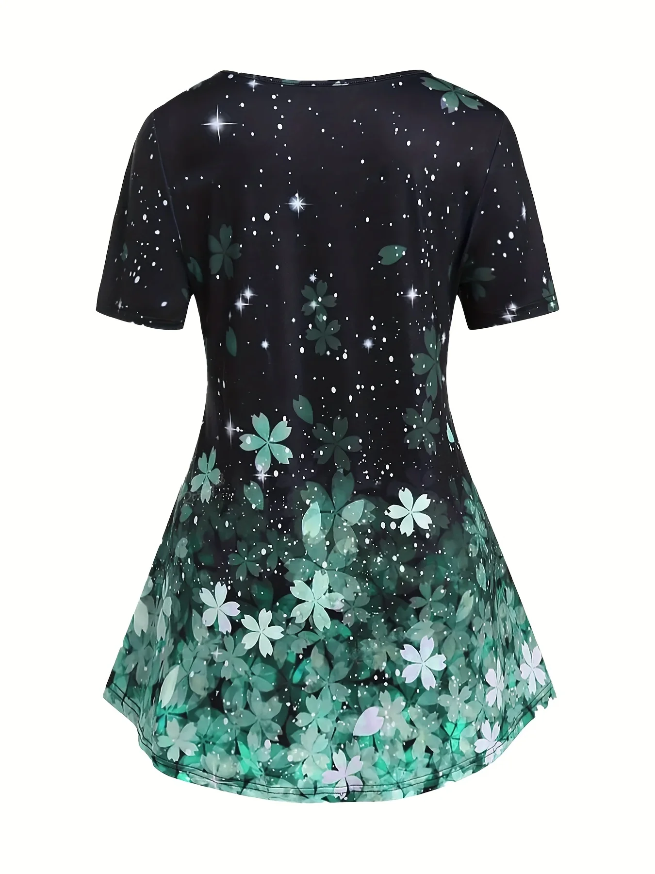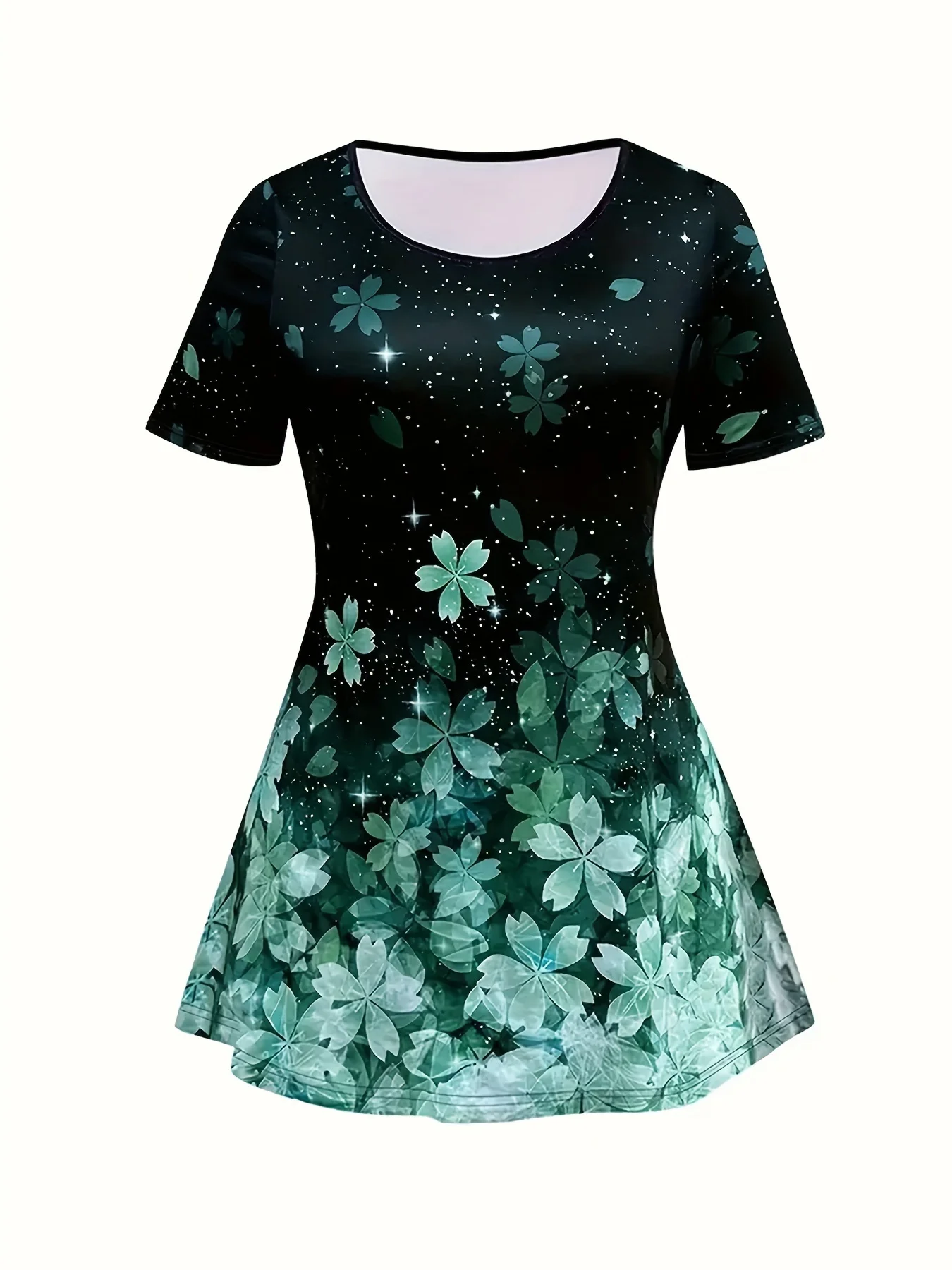 Plus Size Large Lady Suit Round Neck New Summer Casual Lucky Grass Print Short-Sleeved T-Shirt Pants Two-Piece Suit